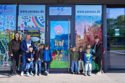 Als Umbausichtschutz hat die Yormas Filiale am Bahnhof auf die Kreativität von Kindern gesetzt. So entstand unter der Leitung von Heidi ein tolles Bild mit Wahrzeichen unserer schönen Stadt. Belohnt